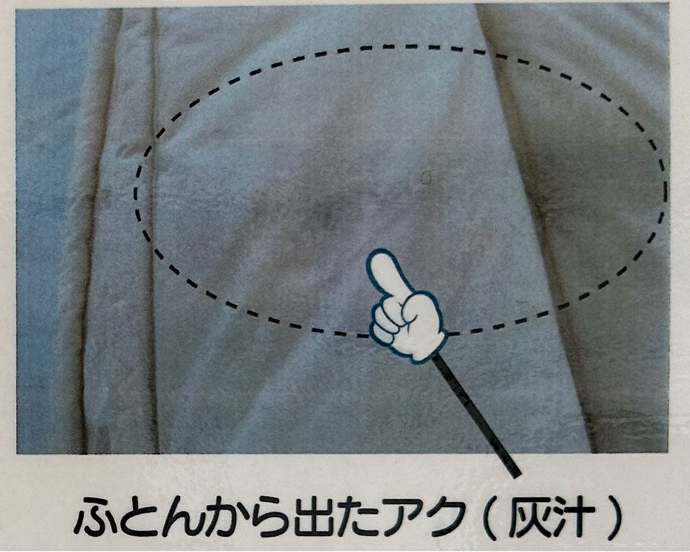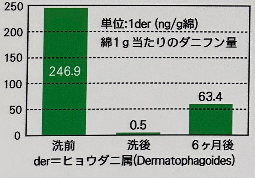 実は逆効果です。ダニのフンや死骸が細かくなって表面に出てきてしまい、叩く前より2〜3割増えてしまうと言われています。中わたに蓄積された水溶性のダニや汚れをしっかり落とすには、中わたまでしっかり水に浸けて汚れを落とす事が大切なのです。