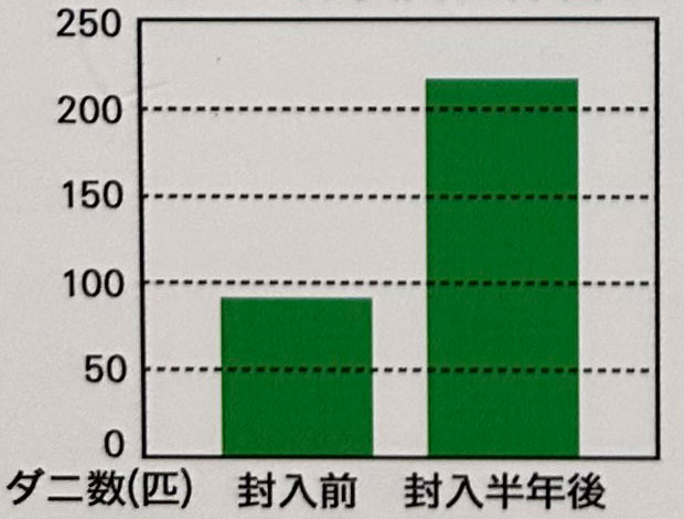 ダニは50°C以上の温度にならないと死にません。夏の日に天日干しだと布団の表面温度は50°C近くになりますが、肝心のダニは布団の中に逃げ込んでしまいます。冬は温度が下がりますから効果は低くなります。